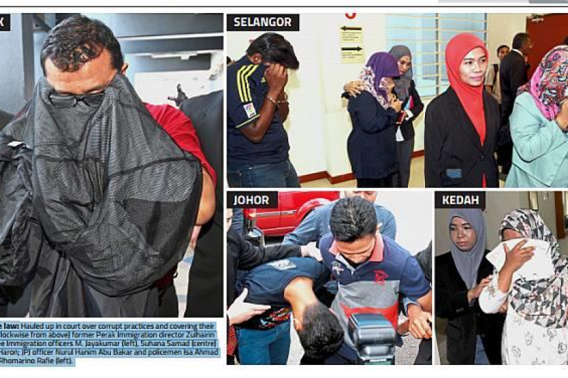 Di Mahkamah Sesyen Ipoh, mereka yang dituduh merupakan bekas pengarah Imigresen dan Ketua Unit Imigresen Negeri Perak, manakala di Mahkamah Sesyen Melaka, seorang polis berpangkat Sarjan telah dituduh. Kesemua tertuduh dituduh mengikut Sesyen 17 (a) Akta SPRM 2009.