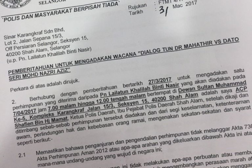 “Alhamdulillah, hari ini kami sudah menerima surat pemakluman daripada polis Shah Alam yang tidak menghalang sesi dialog ini diadakan.