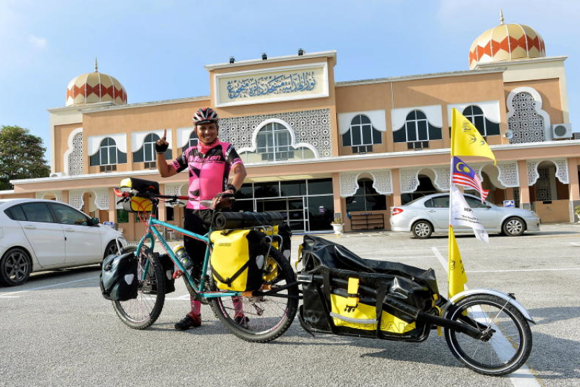 Khairil Aslan, 42, yang dalam misi ekspedisi solo berbasikal mengelilingi Semenanjung Malaysia tiba di Masjid Nurul Hidayah di sini kira-kira pukul 5.30 petang tadi selepas bertolak dari Masjid Jamek Sultan Hishamuddin, Sabak Bernam pada 8.30 pagi.
