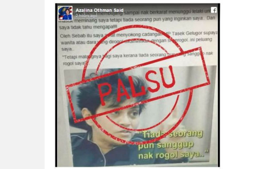 Menurut kenyataan media yang dikeluarkan pejabat Azalina pada Selasa, laporan polis itu untuk tujuan keselamatan Menteri di Jabatan Perdana Menteri, dan menafikan kandungan 'posting' tersebut yang palsu dan menjelikkan.