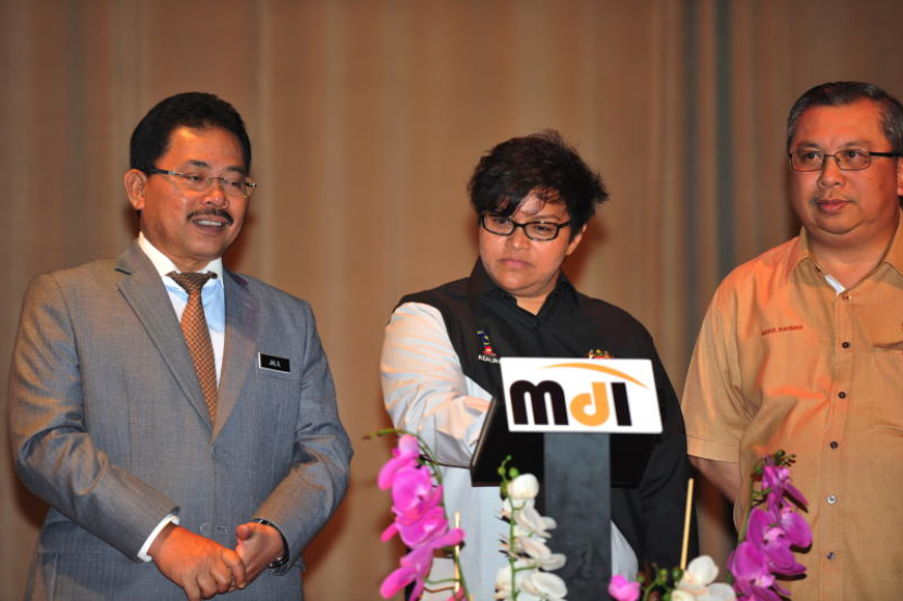 Menteri di Jabatan Perdana Menteri (JPM) Datuk Seri Azalina Othman Said melancarkan Jelajah MyDi di Dewan Bahagian Hal Ehwal Undang-Undang JPM, Selasa. Turut hadir Ketua Pengarah Jabatan Insolvensi Malaysia Datuk Abd Rahman Putra Taha (kanan) dan Pengarah Bahagian Hal Ehwal Undang Undang Datuk Jalil Marzuki (kiri).