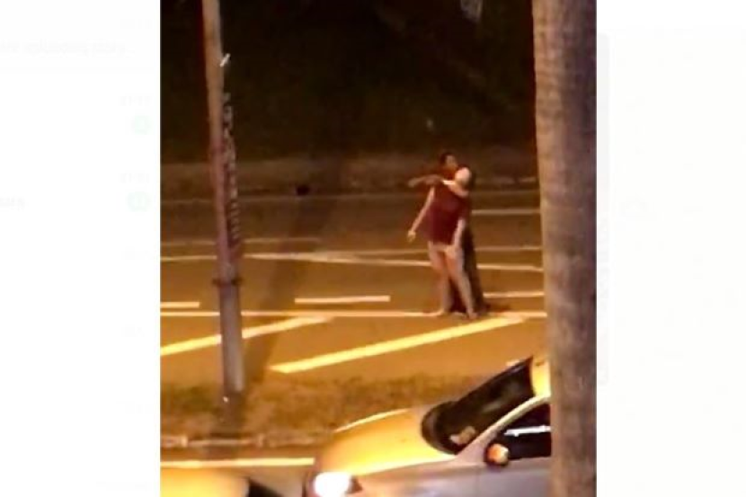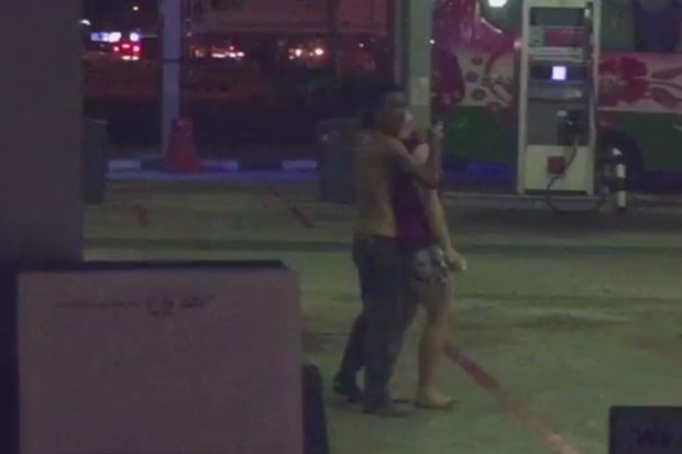 Pada pukul 9.20 malam, lelaki itu dilihat duduk di atas jalan raya dan pisau masih di leher wanita tersebut.