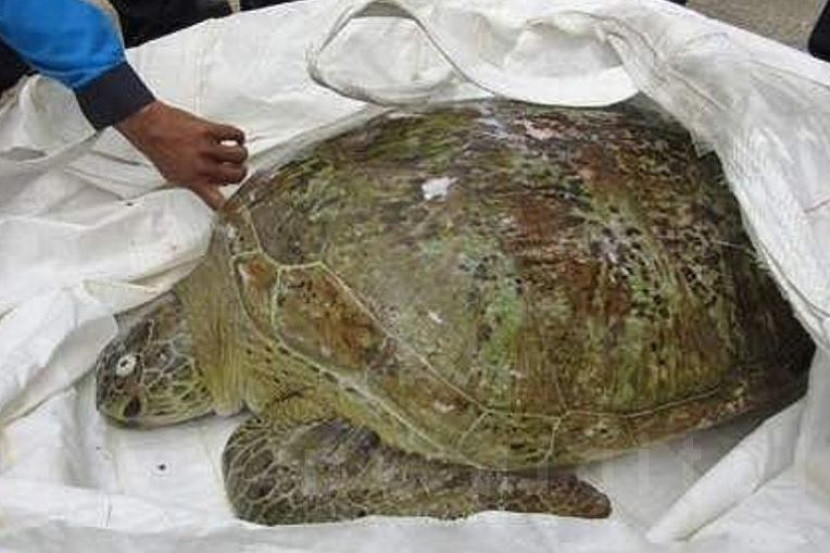 "Agak berat penyu ini dan kita terpaksa gunakan tali keselamatan untuk mengeluarkannya. Namun penyu itu tidak cedera," katanya. -Bernama