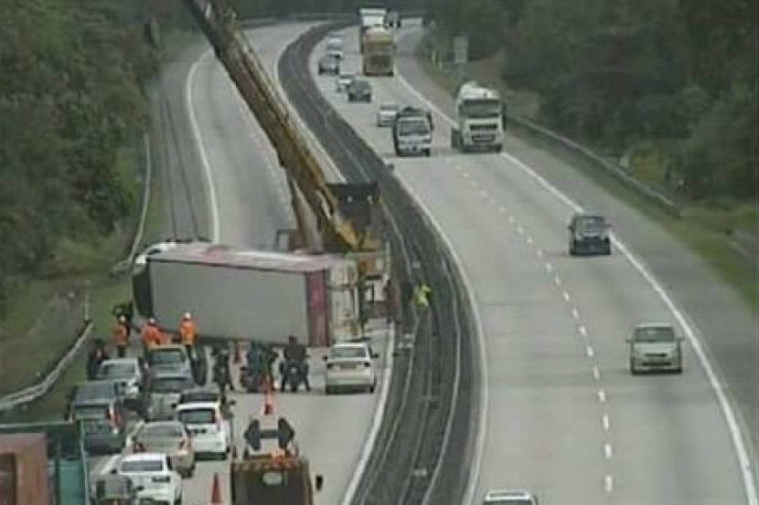 "Lori yang dipandunya kemudian melanggar penghadang jalan sebelah kiri sebelum terbalik di lorong kanan.