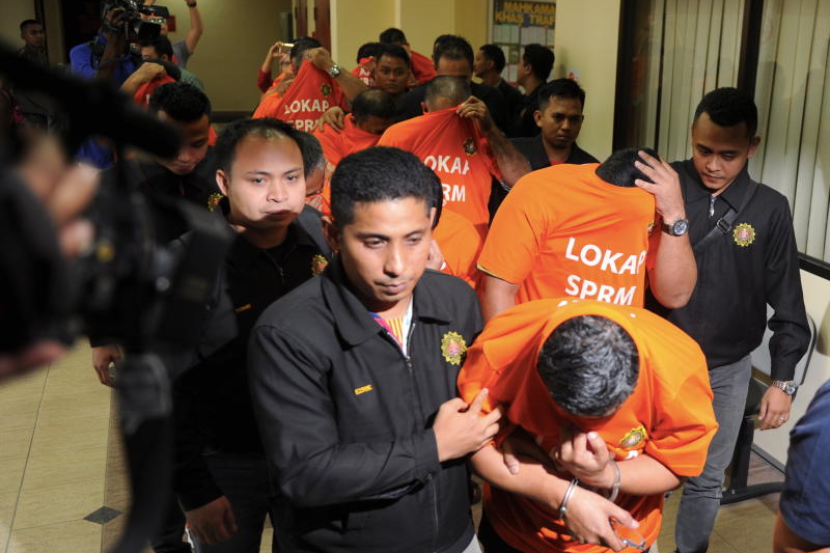 SPRM negeri menahan 12 suspek itu termasuk lapan kontraktor berusia di antara 41 dan 52 tahun. - BERNAMA