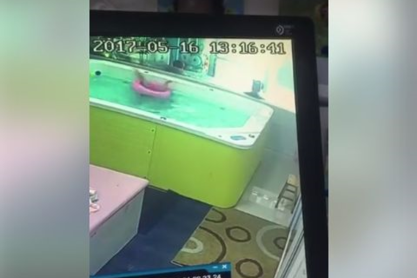 Dalam rakaman berdurasi 1 minit 37 saat itu, kanak-kanak itu dipercayai ditinggalkan di dalam kolam spa tersebut sendirian.