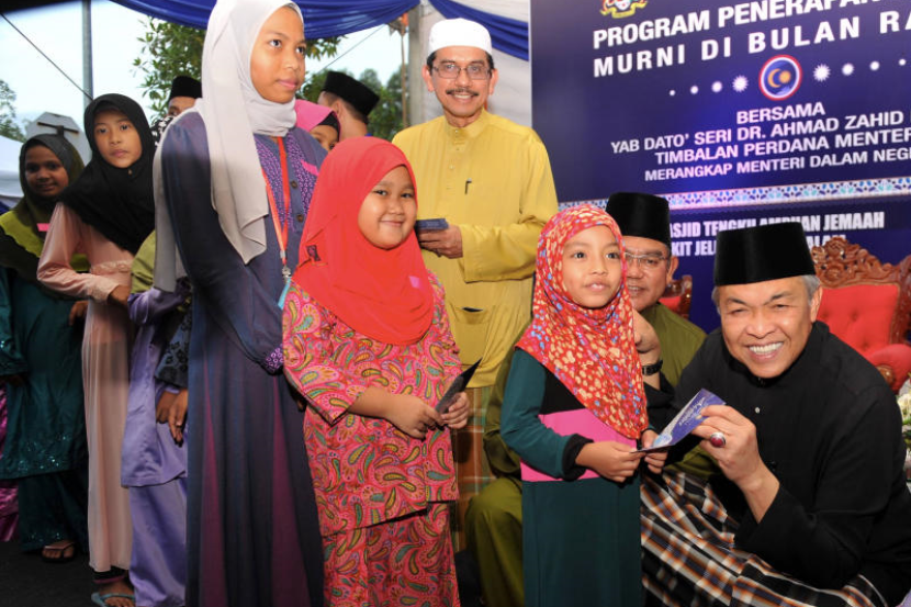 Ahmad Zahid yang juga Menteri Dalam Negeri turut meluangkan masa berbuka puasa dan menunaikan solat Maghrib bersama warga KDN. - BERNAMA