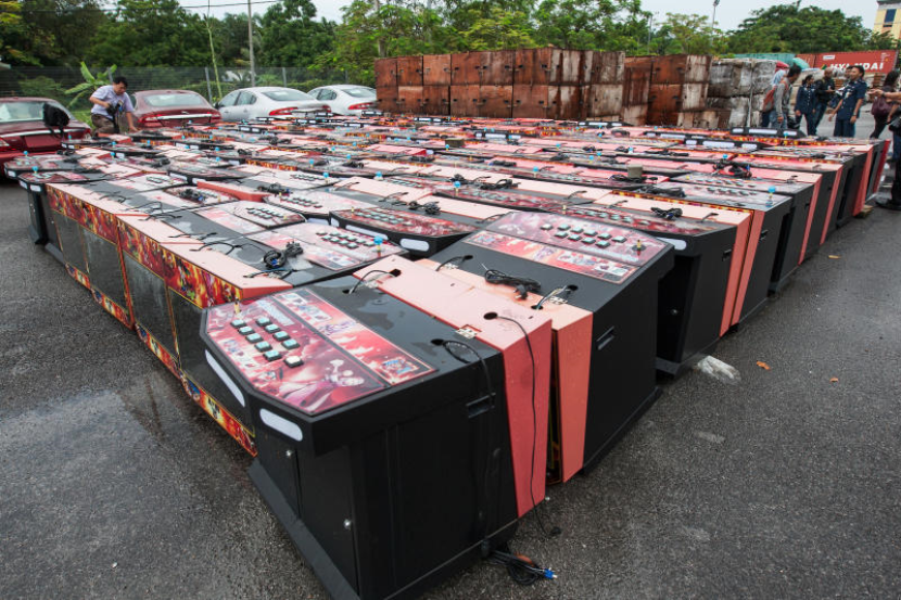 Ketua Pengarah Kastam Datuk T. Subromaniam berkata komponen dalam lapan kontena itu yang diimport dari China, boleh menghasilkan kira-kira 1,227 unit mesin judi.