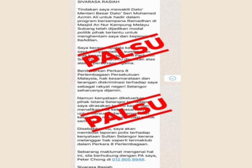 Sebelum ini tular di WhatsApp satu kenyataan yang kononya dikeluarkan oleh Sivarasa sebagai berkata, "Kenyataan dikeluarkan pihak Istana Selangor terhadap saya dirasakan terlalu kasar dan menafikan hak kebebasan saya untuk bersuara dan menyatakan kebenaran mengenai situasi politik semasa.
