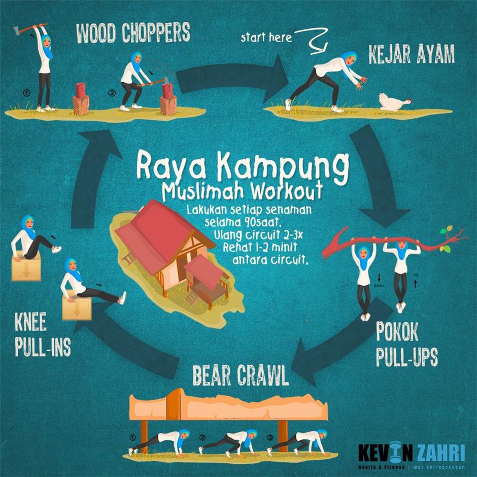 “Bagi sesiapa yang beraya di kampung, boleh bangun lebih awal untuk bersenam. Contohnya, boleh lari kejar ayam, potong kayu atau mencakar sampah untuk mengeluarkan peluh,” kata Kevin.