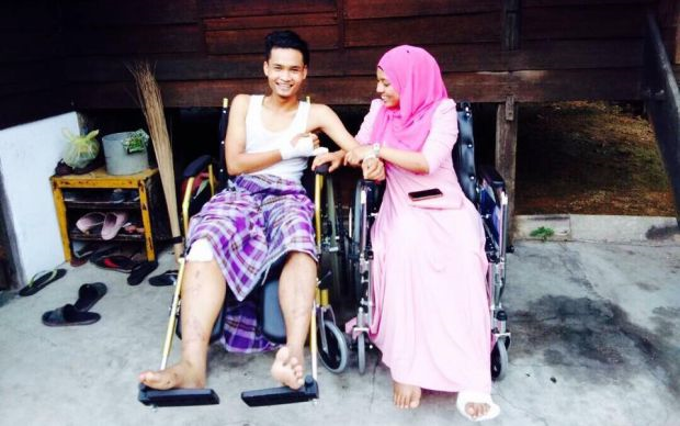 Terbaharu, Norman Danish menerima kiriman gambar daripada Nor Amyliana yang menunjukkan gambarnya bersama suami dengan kedua-duanya terpaksa menggunakan kerusi roda akibat patah kaki kanan selepas mengalami kemalangan.
