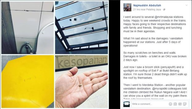 "Apabila berdepan dengan masalah berkaitan MRT, salah satu masalah utama yang perlu dihadapi adalah vandalisme dan ia semakin menjadi-jadi.