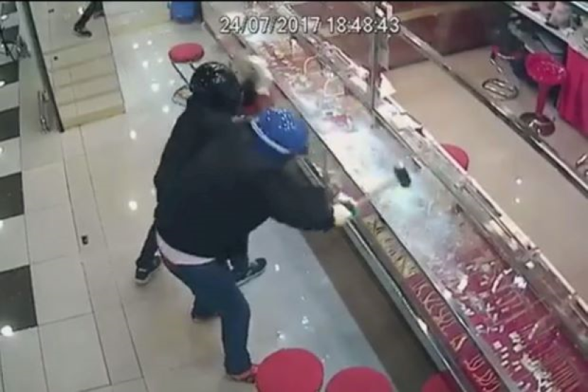Video berdurasi 42 saat itu menunjukkan dua perompak cuba memecah cermin pameran menggunakan tukul sementara pekerja di premis lari menyelamatkan diri.