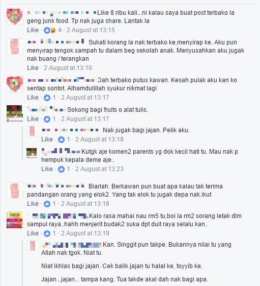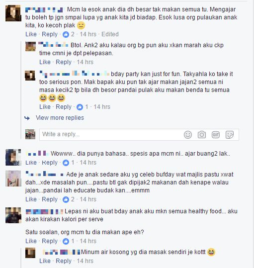 Ada juga yang bersetuju dengan pandangan Nor Azlin tetapi menganggap cara dia mengajar anak untuk tidak makan makanan ringan tidak sesuai, selain menggunakan bahasa yang kasar dalam menulis posting.