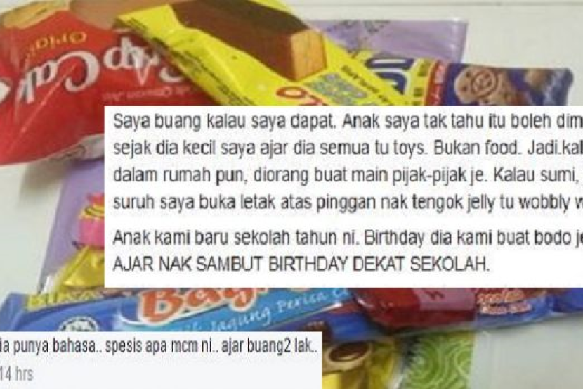 Lebih membuatkan netizen bengang apabila dia cuba mempertikaikan tentang sikap ibu bapa hari ini yang menyambut hari jadi anak mereka di sekolah dan mengagihkan jajan sebagai 'goodies' kononnya untuk bersedekah.