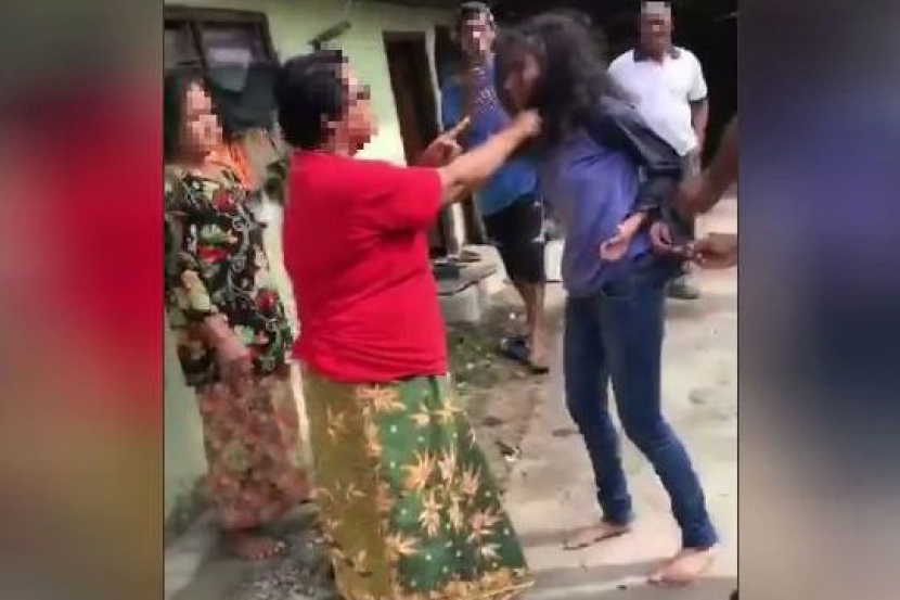 "Pada Rabu, video sepanjang lima hingga 10 saat merakamkan aksi seorang wanita ditahan penduduk kampung, disoal sebelum dibelasah menjadi tular.