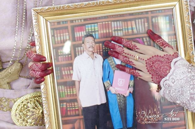PETALING JAYA: Dinding itu lama ditenung seorang wanita yang jarinya penuh berinai dari atas pelamin, mulanya dia tersenyum namun kemudian perasaan bertukar sebak dan penuh beremosi. Walaupun suami yang baharu dinikahinya berada di sisi, namun ia tidak dapat menghalang air matanya berguguran apabila memandang bingkai gambar yang digantung pada dinding itu. “Masa tu saya dan suami ada sesi fotografi di atas pelamin. Masa jurugambar membetulkan ‘setting’ pada kamera, saya terpandang beberapa bingkai gambar yang digantung pada dinding dekat pelamin. “Ada gambar kakak kahwin. Bila saya tengok ayah kat gambar tu. Saya sebak sebab ayah dah tak ada lagi, rasa terkilan sebab tak sempat lihat saya kahwin,” kata Linda Asmawati Iskandar kepada mStar Online. Linda (kanan) dan suami bergambar bersama bingkai gambar yang memaparkan wajah arwah bapanya. Gambar perkahwinannya termasuk ‘bergambar’ bersama bingkai gambar yang memaparkan ayahnya tular selepas dimuat naik di Facebook ‘Dzul Affandi Roslan’. Wanita berusia 23 tahun itu berkata, gambar itu menunjukkan dia bersama ibu bapanya semasa sesi konvokesyen di sebuah institut pengajian tinggi pada akhir 2015. Bapanya, Allahyarham Iskandar Omar meninggal pada 1 Mei tahun lalu akibat sakit jantung dan dia bersyukur berada di saat bapanya menghembuskan nafas terakhir. “Dulu, ayah ada minta saya supaya cepat-cepat kahwin, ayah kata dia nak tengok saya berumah tangga. Tapi tak sangka ayah pergi dulu, Tuhan lebih sayangkan ayah. “Sebab tu bila terpandang gambar yang ada ayah, saya sebak. Saya ambil keputusan untuk bergambar bersama bingkai gambar tu kerana bagi saya, walaupun ayah dah tak ada, dia sentiasa di hati saya. Saya peluk kuat-kuat bingkai gambar tu,” kata Linda yang berasal dari Jasin, Melaka. Hanya tinggal kenangan. Walaupun bapanya tidak berkesempatan melihat dia berkahwin, namun anak bongsu daripada empat beradik ini masih mengingati pesanan bapanya supaya sentiasa menjaga diri dan menjadi seorang isteri bertanggungjawab. “Masa bakal suami merancang untuk menghantar rombongan merisik tahun lalu, ayah diberitahu mengenai perkara itu ketika dia terlantar di hospital. Alhamdulillah, ayah izinkan saya bersama lelaki yang kini menjadi suami saya,” katanya. Mengenai kenangan manis bersama bapa, Linda tiba-tiba sebak dan diam seketika tetapi tidak lama kemudian menjawab ringkas: “Banyak kenangan bersama ayah.” Namun kata Linda, dia sentiasa teringat setiap kali menjamu masakan Tom Yam. “Arwah ayah suka makan Tom Yam. Walaupun kasih sayang saya pada arwah ayah tidak pernah luntur dan hidup perlu diteruskan tetapi bila makan Tom Yam, buatkan saya teringat dia,” katanya.