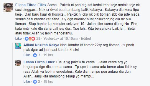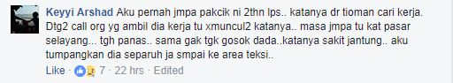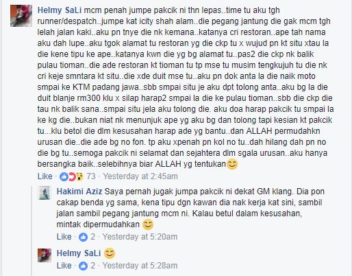 Antara komen pengguna Facebook yang mendakwa turut pernah berjumpa dengan 'Pak Cik Tioman' di beberapa lokasi di Lembah Klang.
