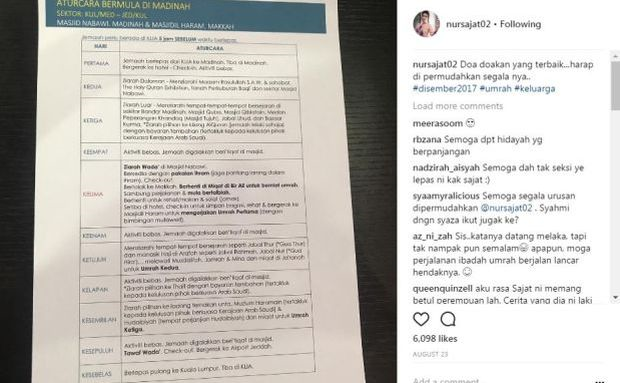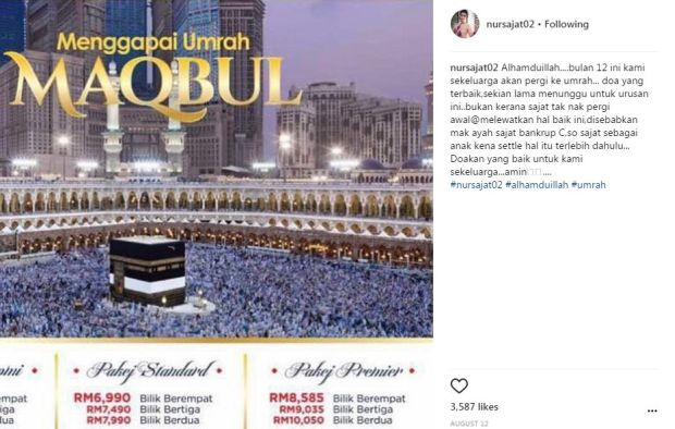 Sajat sebelum ini memuat naik gambar pakej umrah di akaun Instagramnya dan memberitahu beliau sekeluarga bakal ke Tanah Suci pada Disember ini.
