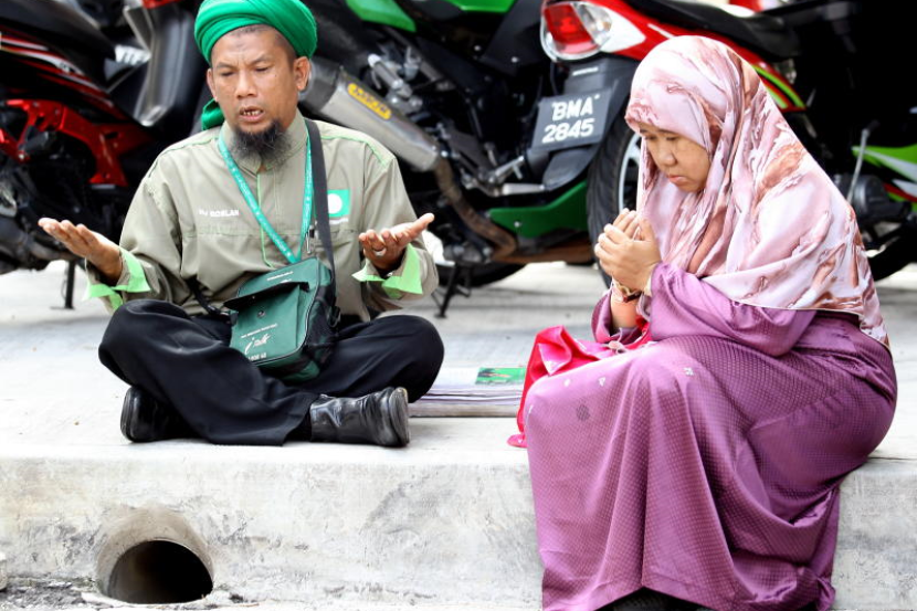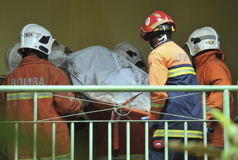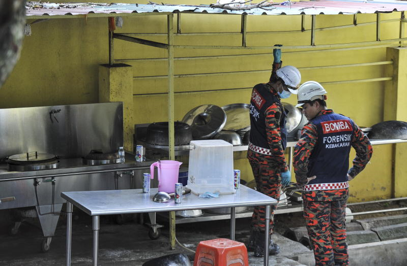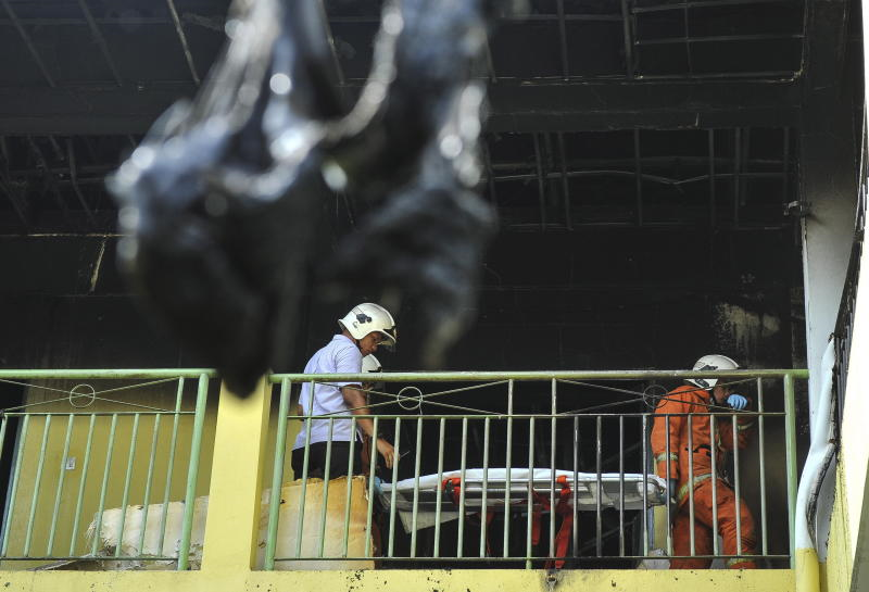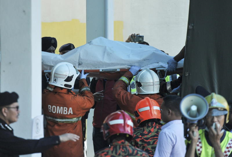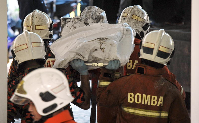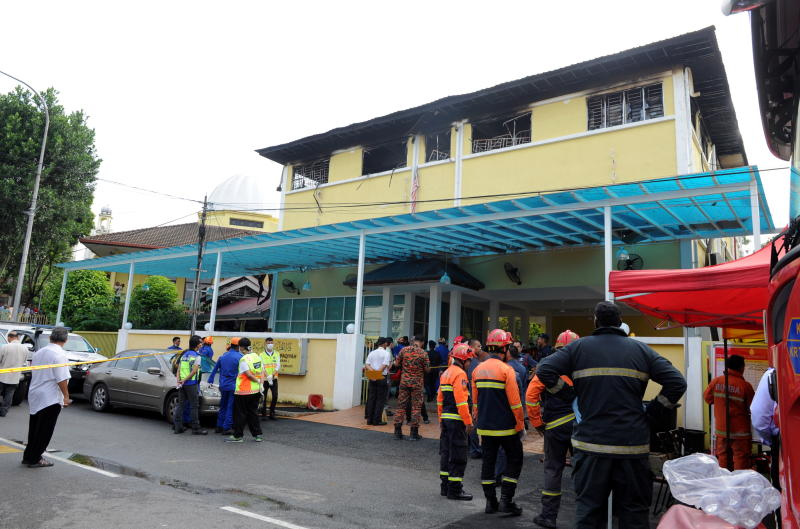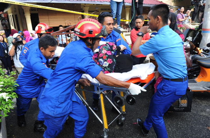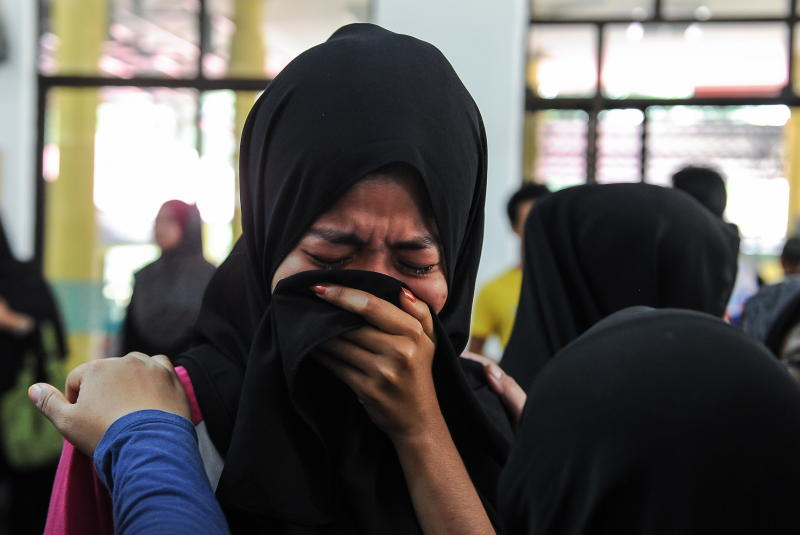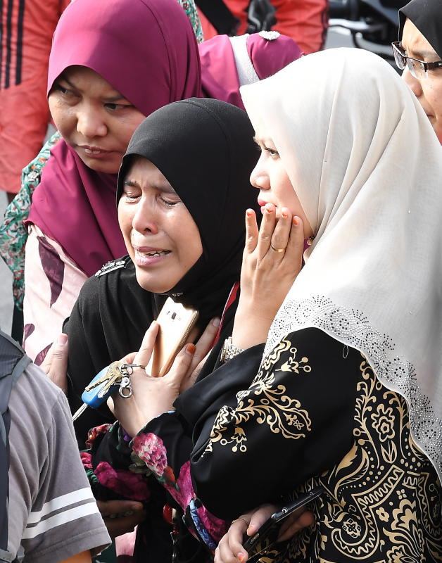 Anggota penyelamat membawa seorang wanita yang hampir tidak sedarkan diri apabila mendapat tahu anggota keluarganya terkorban dalam kebakarandi Tahfiz Darul Quran Ittifaqiyah, Jalan Keramat. - Bernama