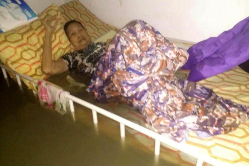 Anggota Bomba dan Penyelamat membawa pelajar-pelajar sekolah dan penduduk kampung P. Ramle setelah banjir kilat melanda di Jalan P. RAmlee pagi Jumaat. -fotoBERNAMA