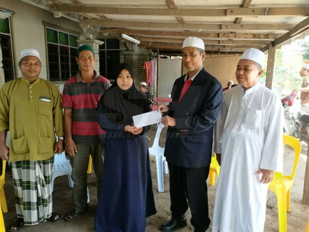 Penyerahan sumbangan itu disampaikan kepada isteri allahyarham, Noor Fatihah Osman, 23, di kediamannya di Kampung Tujoh, Sabtu.