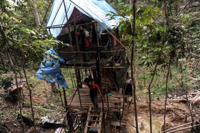 Pondok itu bertiangkan kayu yang tidak kukuh serta beralaskan bumbung plastik dan ia dibina di bawah cerun bukit dengan anggaran kedalaman kira-kira 20 meter.