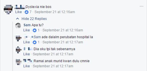 Namun, ada pengguna Facebook yang mengaitkan kebolehan murid Tahun Tiga itu sebagai tanda-tanda Disleksia iaitu sejenis gangguan perkembangan diri yang mempengaruhi secara khusus kebolehan seseorang kanak-kanak belajar membaca dan menulis.