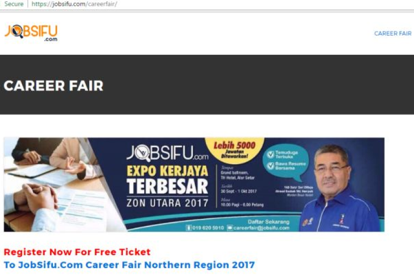 Menerusi carian di Internet, iklan mengenai expo tersebut dipromosikan dalam laman Facebook Jobsifu.com selaku penganjur pada Ogos lalu.