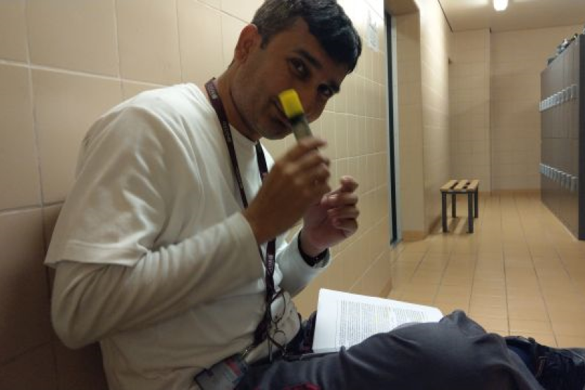 Aku selalu mengusik dia. Kadang-kadang agak kasar juga tetapi dia selalu ketawa kecil. Tidak pernah mencarut. Sebaliknya akan mengenakan aku dengan ayat: "Muslim ke kau buat macam ni?"