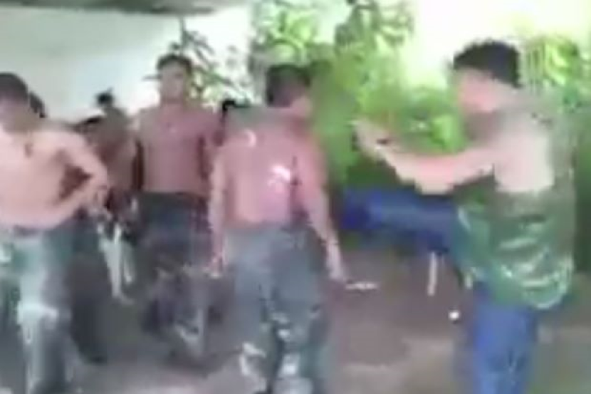 Rakaman berdurasi tiga minit itu menunjukkan pelatih tentera tanpa baju berdiri dalam barisan sebelum setiap seorang daripada mereka ditendang oleh pegawai yang kelihatan lebih senior dan memiliki fizikal lebih besar.