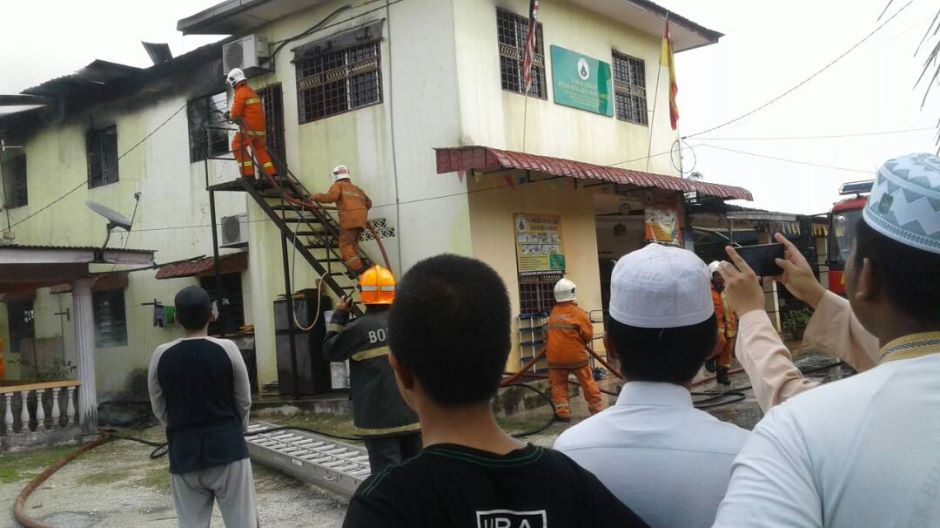 "Dilaporkan ketika kejadian, 25 pelajar lelaki dan dua guru yang menghuni di asrama itu berada di tingkat bawah mengikuti kelas mengaji," katanya ketika ditemui pemberita di lokasi kejadian.