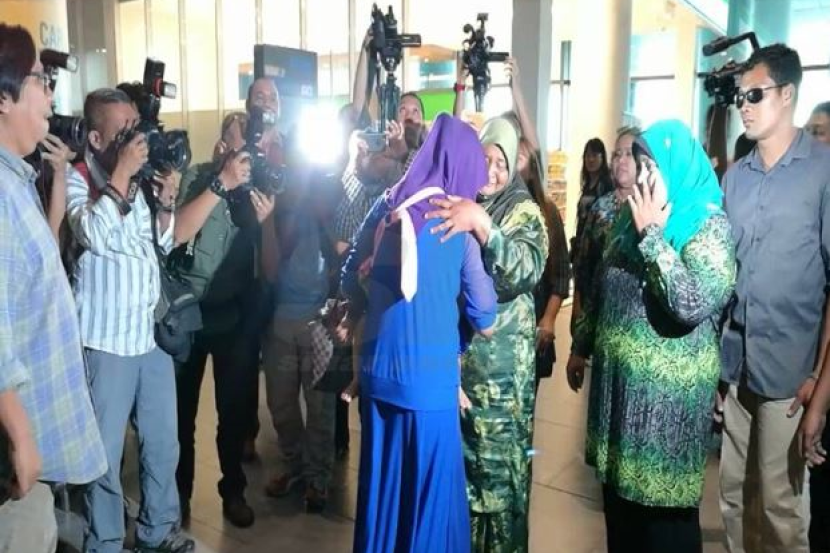 Normah Yusof, 51, menyambut ketibaan anaknya itu di Lapangan Terbang Antarabangsa Kuala Lumpur (KLIA), di sini pada pukul 2.35 petang.