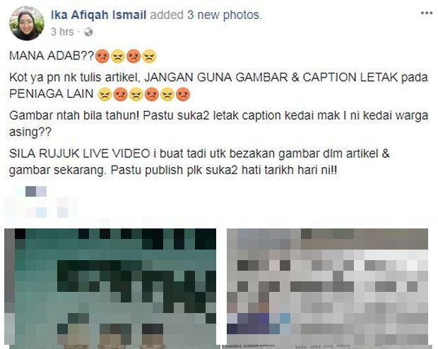 “Terkejut bila tengok gambar kedai kami bagi menunjukkan premis warga asing. Kami orang tempatan, dah lama menetap di Kuala Lumpur. Siapa pula warga asing?