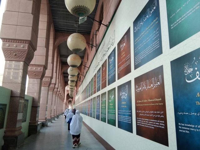 Tempat dimaksudkan ialah menyaksikan Pameran The Beautiful Names Of Allah di bangunan berwarna coklat dan terletak berhadapan dengan pagar 13 di Masjid Nabawi. Dibuka dari jam 9 pagi hingga 2 petang dan di antara 4 petang dan 9 malam, pada setiap hari. Masuk adalah percuma.