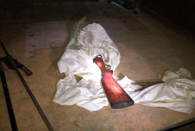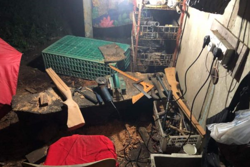 Katanya, beberapa peralatan membuat senjata api ditemui termasuk selaras senapang yang sudah siap dan tiga senapang yang masih dalam pembuatan.