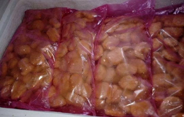 Peniaga berkenaan, seorang wanita, berkata nugget berkenaan dijual pada harga RM25 sekilogram dengan setiap paket mengandungi 50 ketul hidangan itu.