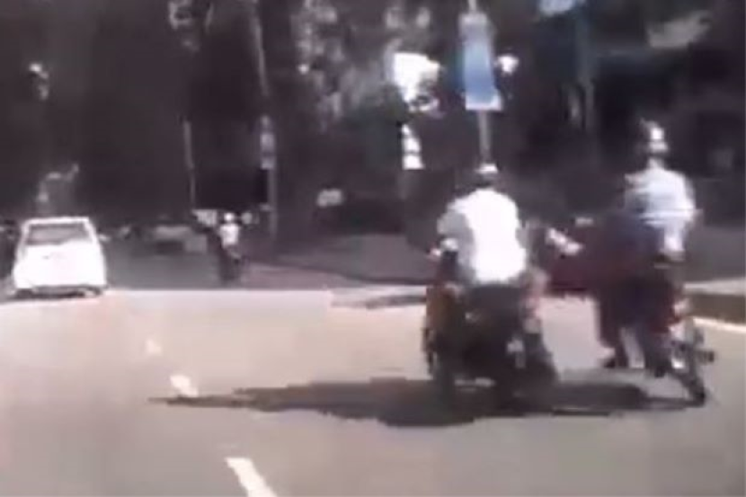 Dalam kejadian pada pukul 3 petang Ahad, video berdurasi 1 minit 22 saat itu menunjukkan seorang lelaki yang menunggang motosikal menghimpit warga emas berusia 60 tahun tersebut sebelum menendangnya.