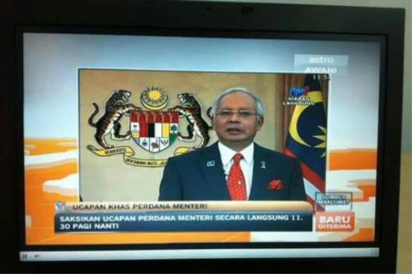 Mesej itu diiringi paparan skrin mengenai penampilan Najib di Astro Awani, bersama-sama dengan perkataan "Ucapan Khas Perdana Menteri" dan "Saksikan Ucapan Perdana Menteri secara langsung di 11.3 pagi nanti".