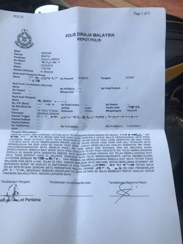 PETALING JAYA: Selepas kisah sepasang pengantin baharu tular di media sosial kerana berdepan detik memalukan gara-gara perbuatan tidak bertanggungjawab pemilik katering menggunakan bekas plastik, kini tampil seorang lagi mangsa yang mengakui diperdaya individu sama.
