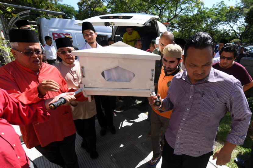Jenazah Sanusi Junid tiba di Masjid Saidina Umar Al-Khattab, Bukit Damansara untuk disolatkan sebelum dikebumikan di Tanah Perkuburan Islam Bukit Kiara pada Jumaat. Foto Bernama