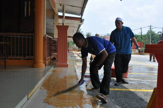 Operasi sertu dan membersih kawasan masjid. Foto Facebook Masjid Jamek Sungai Plong