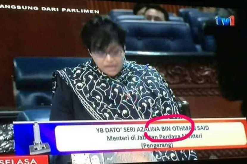 Kesilapan itu berlaku apabila RTM menerusi siaran langsung Sidang Dewan Rakyat memaparkan nama Azalina sebagai “bin” dan ia ditayangkan secara langsung.