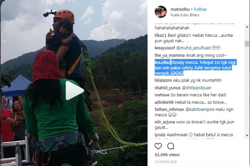 "Mecca memakai safety harness (abah-abah keselamatan) yang lengkap. Restas Adventures adalah penganjur tali hayun yang bertauliah," ujarnya.