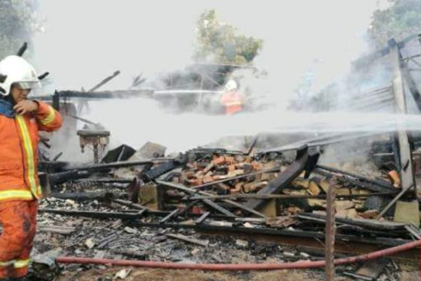Dalam kejadian kira-kira jam 4 petang, sebuah rumah separuh kekal milik Fong Kheng Fee, 57 yang dijadikan sebagai stor simpanan peralatan membaik pulih bot musnah dalam musibah itu.