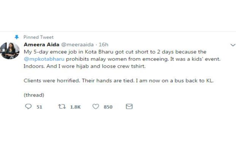 Ameera Aida, yang merupakan seorang pengacara bebas meluahkan kekecewaannya di Twitter pada Jumaat, mendakwa bahawa dia sedang mengacarakan sebuah majlis kanak-kanak, sambil memakai tudung dan kemeja-T yang longgar sewaktu pegawai MPKB melakukan tindakan itu.