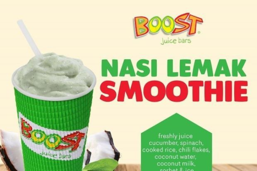 Rangkaian jus buah-buahan Boost Juice Bars menghasilkan minuman baharu yang bakal memenuhi keinginan anda iaitu smoothie 'Nasi Lemak' (Nasi Lemak Smoothie).