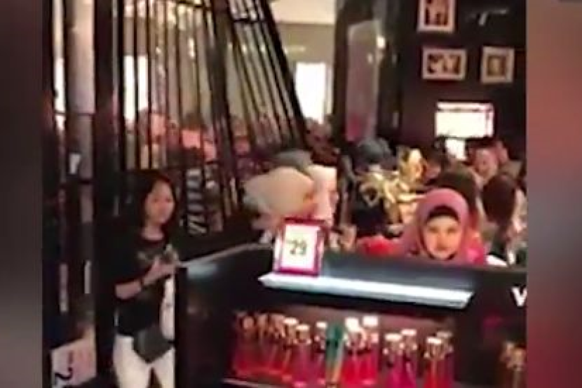 Video tular yang berlaku di salah sebuah cawangan Victoria's Secret di sebuah pusat membeli-belah di Kota Kinabalu, menunjukkan keadaan huru-hara diserbu orang ramai.