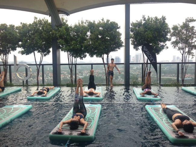 Beroperasi di Taman Tun Dr Ismail, Boga Fit Mat merupakan senaman di atas tikar terapung dalam air.
