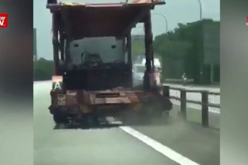 Namun dia kembali merakam detik ngeri itu yang memperlihatkan keadaan treler yang sudah rosak selepas terbabas ke laluan bertentangan.